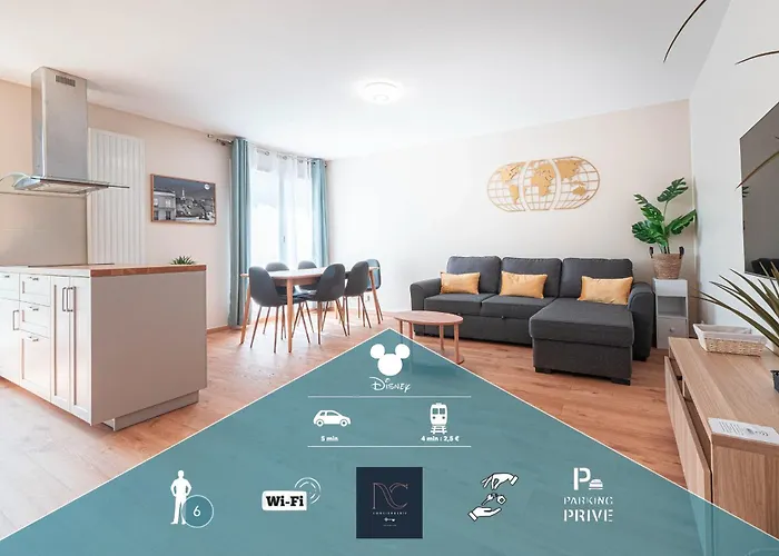 Disneyland-Paris, 6 Pers, Wifi, Parking Prive Chessy apartment is located in Chessy, 4.9 km from the indoor-outdoor Aqualagon Water Park, and boasts a treatment room, a steam room, and hot public baths. If you are travelling to Chessy to go skiing, this apartment offers a ski storage room.